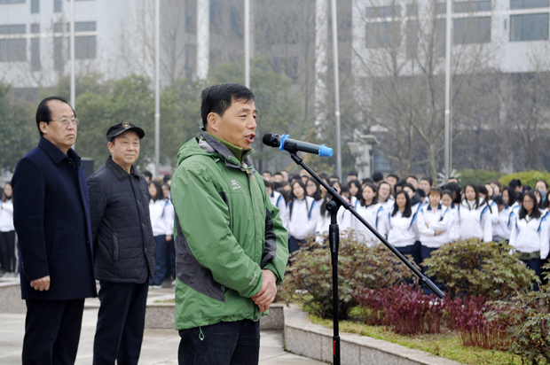 本网讯3月19日清晨,全校师生列队国旗坪四周,举行新学期升国旗仪式。董事长吕明,校长张义明,党委书记胡鸿晓,副校长温小郑、唐明晰,工会主席刘明夫,校长助理张斌崇、吴俊林、罗文谦等领导参加。胡鸿晓主持。
