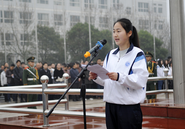 青年干部学院第六期学员、经济管理学院大一学生别样红作国旗下演讲。她在演讲中表示了在新学期刻苦学习,努力奋进的决心。
